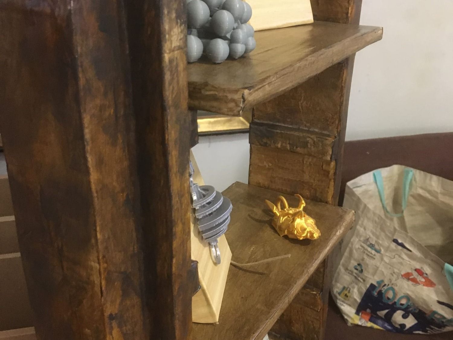 Ce présentoir a été entièrement réalisé à la main en carton et papier mâché, puis travaillé pour obtenir une texture brute et un aspect patiné rappelant le bois ancien. Son design aux lignes architecturales et aux volumes marqués lui confère une présence forte et sculpturale. Conçu comme un véritable écrin, il met en valeur les créations imprimées en 3D grâce à un jeu d’étagères à différentes hauteurs, créant rythme, profondeur et lisibilité. Le contraste entre la matière brute du présentoir et les formes contemporaines des objets exposés renforce l’univers de LiliProduction, à la croisée de l’artisanat et du design. Solide, léger et unique, ce présentoir est idéal pour les expositions, marchés artisanaux ou vitrines, et fait partie intégrante de la mise en scène des créations : il ne se contente pas de les soutenir, il les sublime.